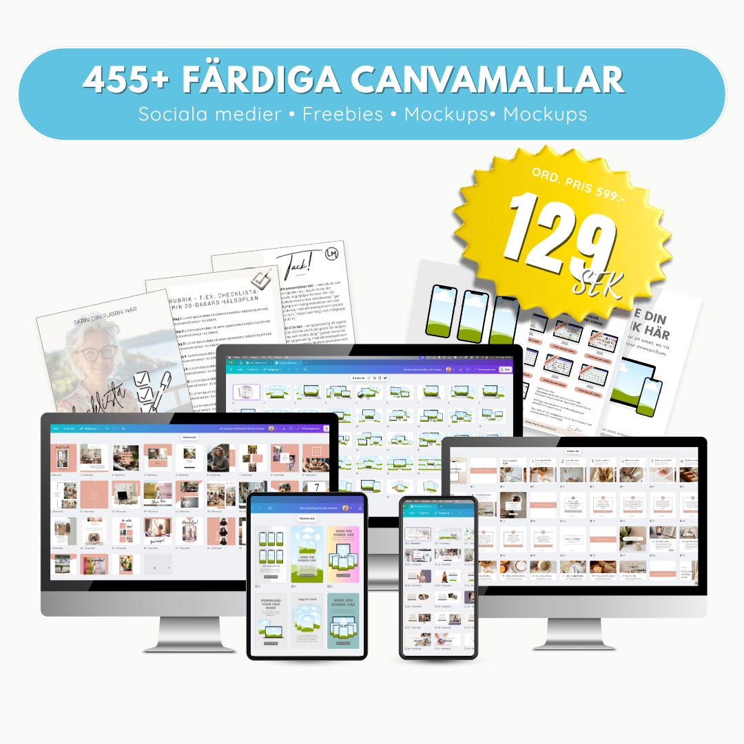 Allt du behöver för professionellt innehĂ„ll â fĂ€rdigt att anvĂ€nda direkt i Canva. Bara byt fĂ€rger, texter och bilder sĂ„ Ă€r du klar!